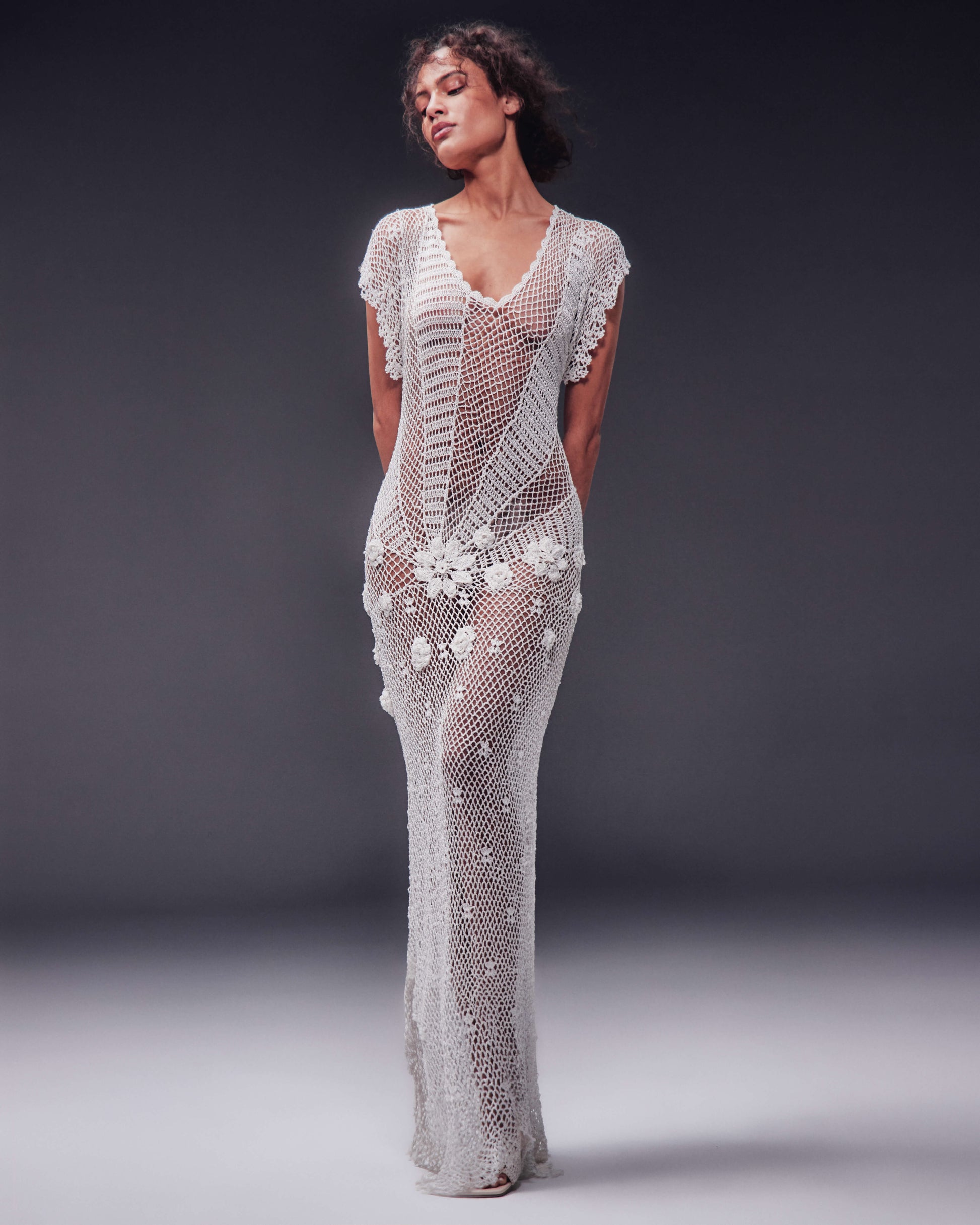Flores is our easy breezy crochet dress in a figure-skimming maxi cut. The perfect look for tropical weddings, honeymoon edits or high summer beach parties.