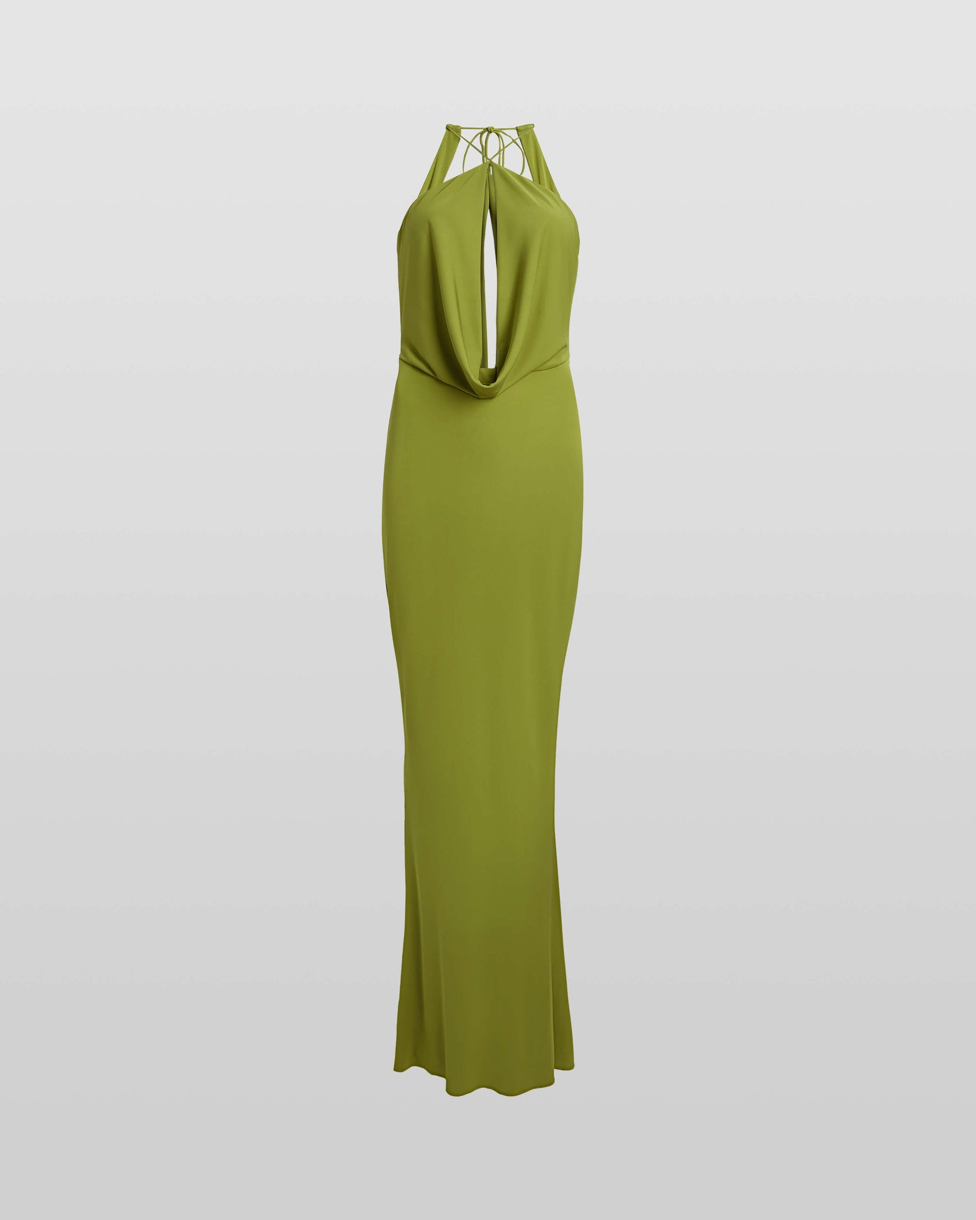 Green and serene, Giovana drapes and plunges in all the right places. We love the low back, it's been precision cut to flatter and highlights the curves of your waist.