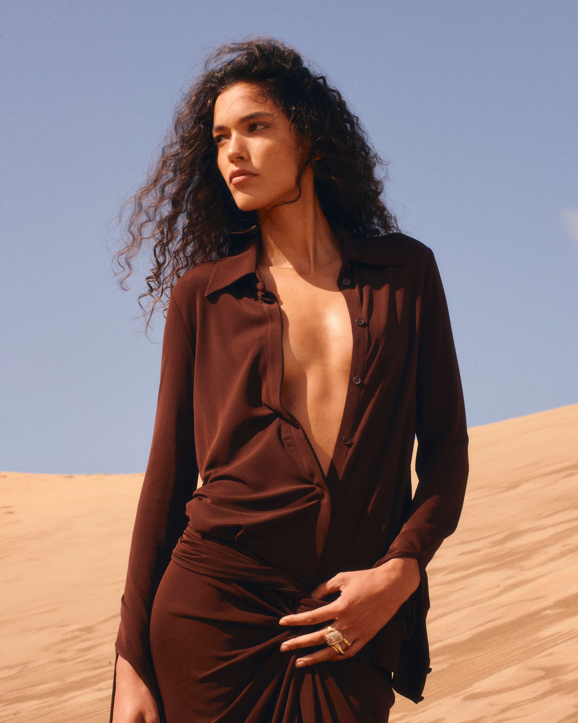 A staple for a reason, Rucci is our new season update on the iconic shirt dress. Cut from a slinky matte jersey with natural stretch ¨C this is the perfect pull-on-and-go style for days in the city. We love the silhouette-shaping knotted waist detail.