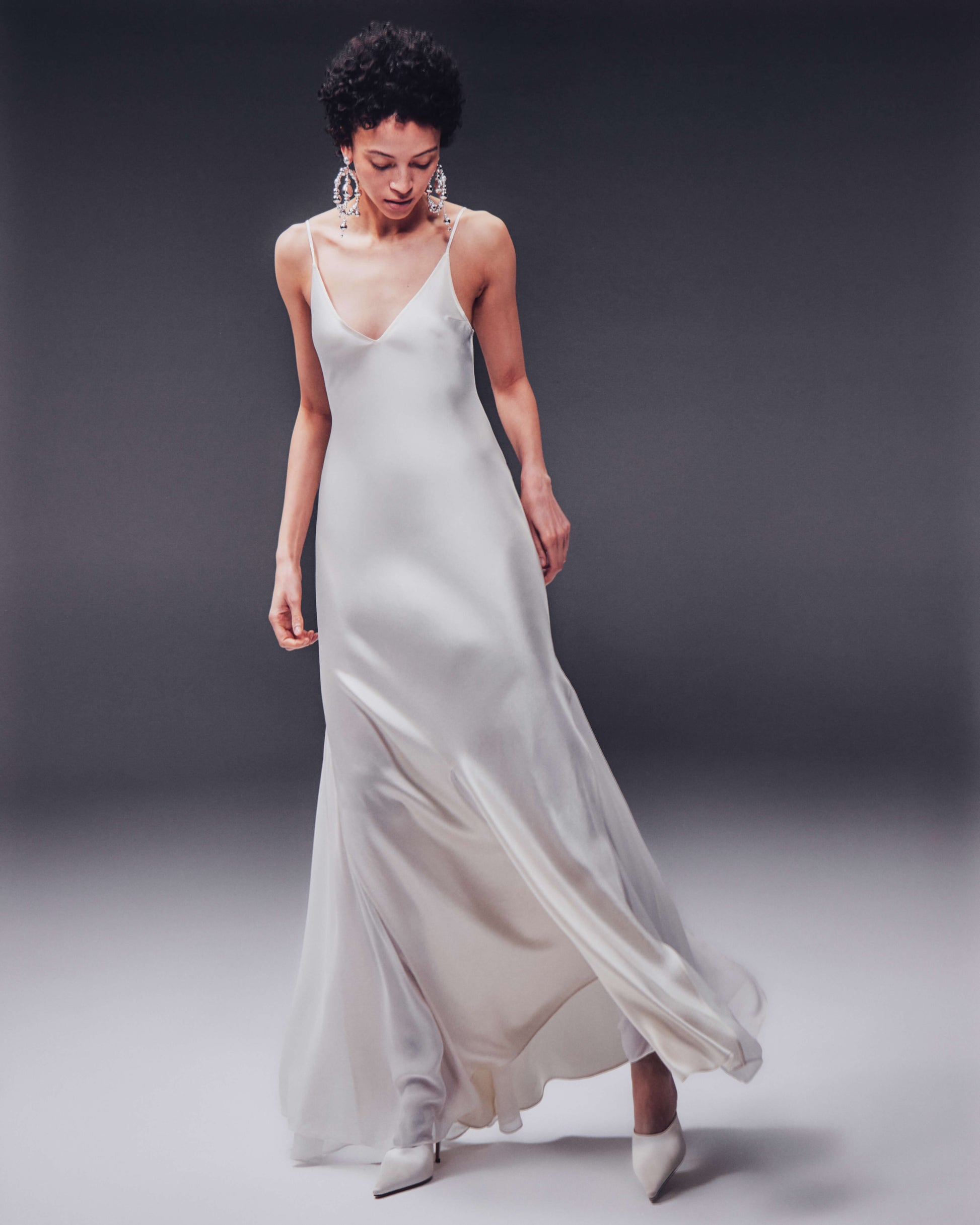 Sade is hot simplicity. Inserts of white georgette at the hem give featherweight fluidity to the silhouette. We love her styled with a stack of cuffs pushed high to the elbow.