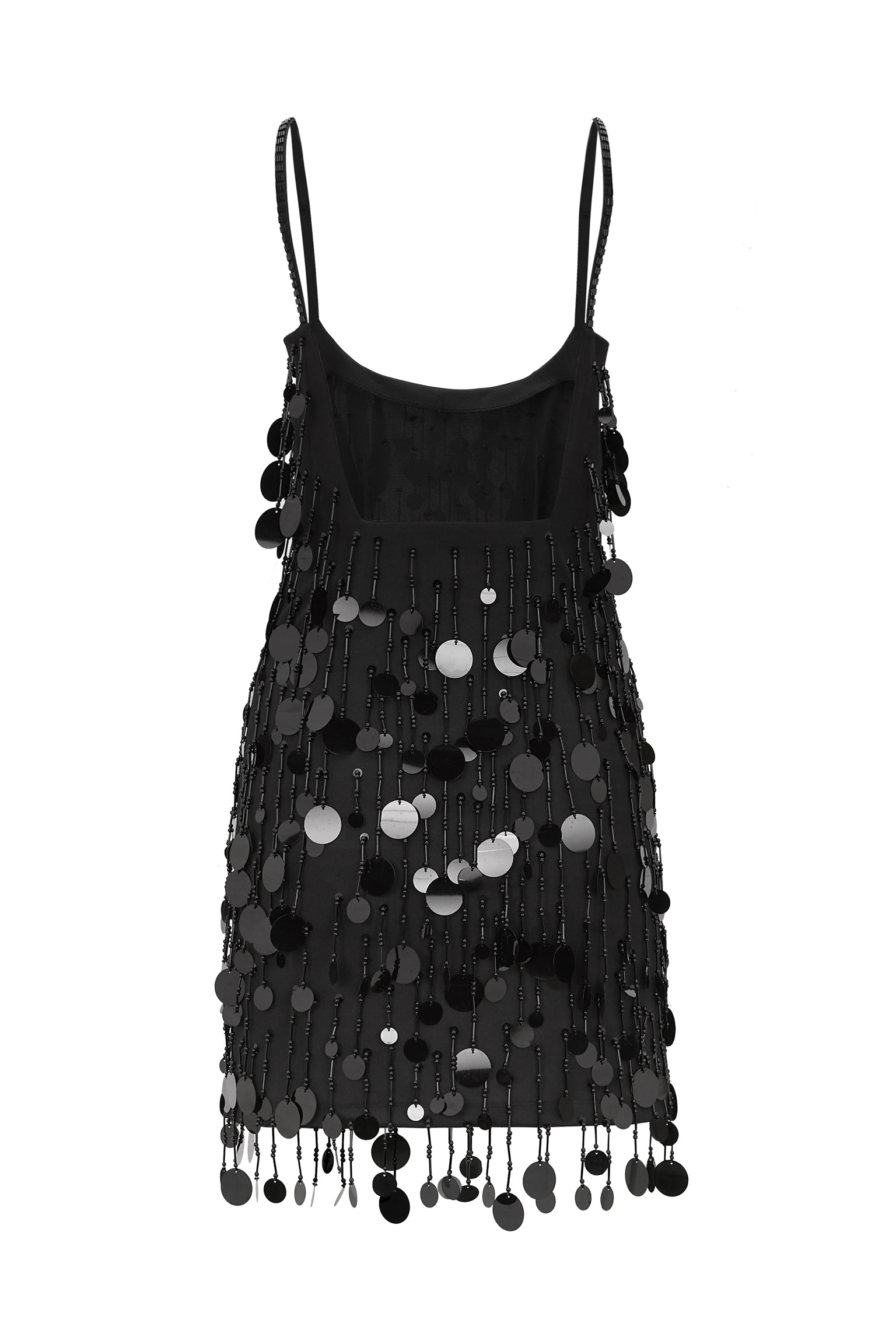 A disco-inspired mini dress, finished with cascades of beads and oversized sequins, the Sadie is a high-octane party dress. Hand-embellished by highly skilled artisans, it's a timeless, 90s-inspired shape with a micro hemline made for dancing all night.