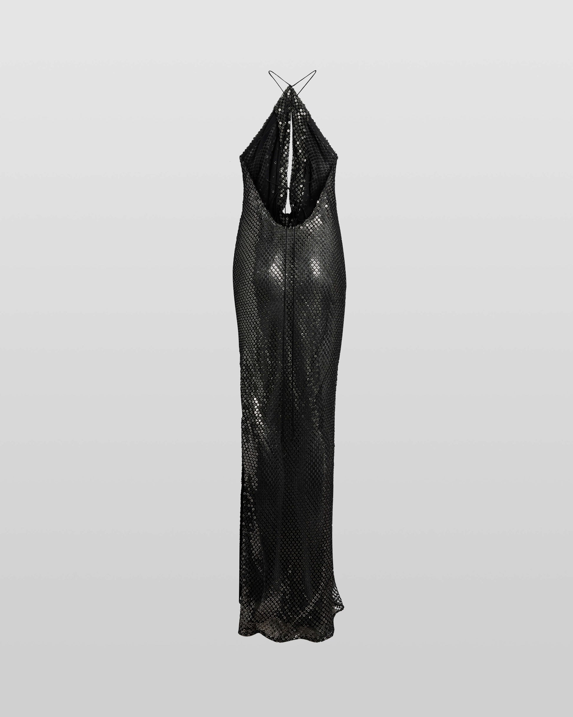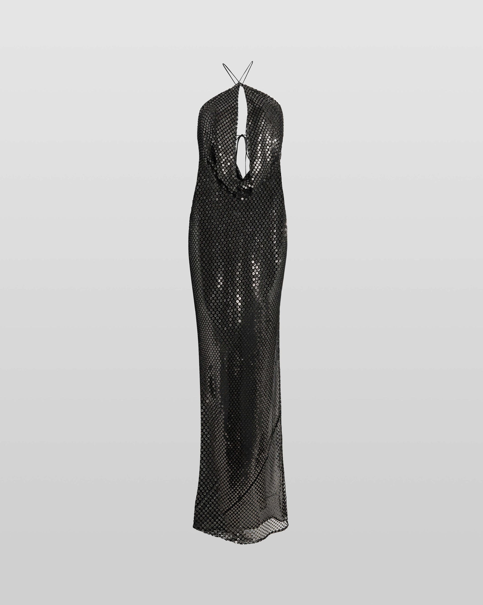 The ultimate spotlight-stealing, head-turning, disco diva. Solar is detailed from neck to hemline with thousands of tiny sunburst-shaped sequins so she catches the light from every angle.